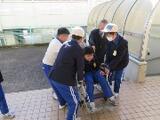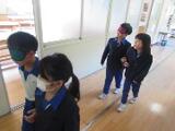 その後、アイマスクを着用して校内を巡回することで、視覚障がいの方の大変さや、介助する難しさや必要性について体験することができました。