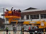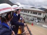 6年は防災授業を受講した後、緊急車両(除雪車、高所作業車など)の見学と乗車体験などをおこないました。