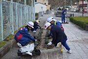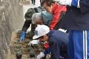 午後から、6年生が五十波自治会と国交省の方々と協力して、葉牡丹550株を植え付けました。