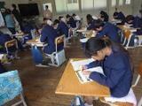 講師の方の話に耳を傾け、凸凹を組み合わせた点字を打ったり、読み取ったり、真剣に取り組みました。