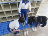 1~3年生が、芋に新聞紙とアルミホイルを巻き、全校生の焼き芋を準備しました。