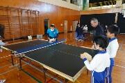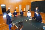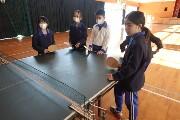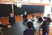 5年生が、視覚障がいについての話を聞き、その後、パラスポーツ体験をしました。